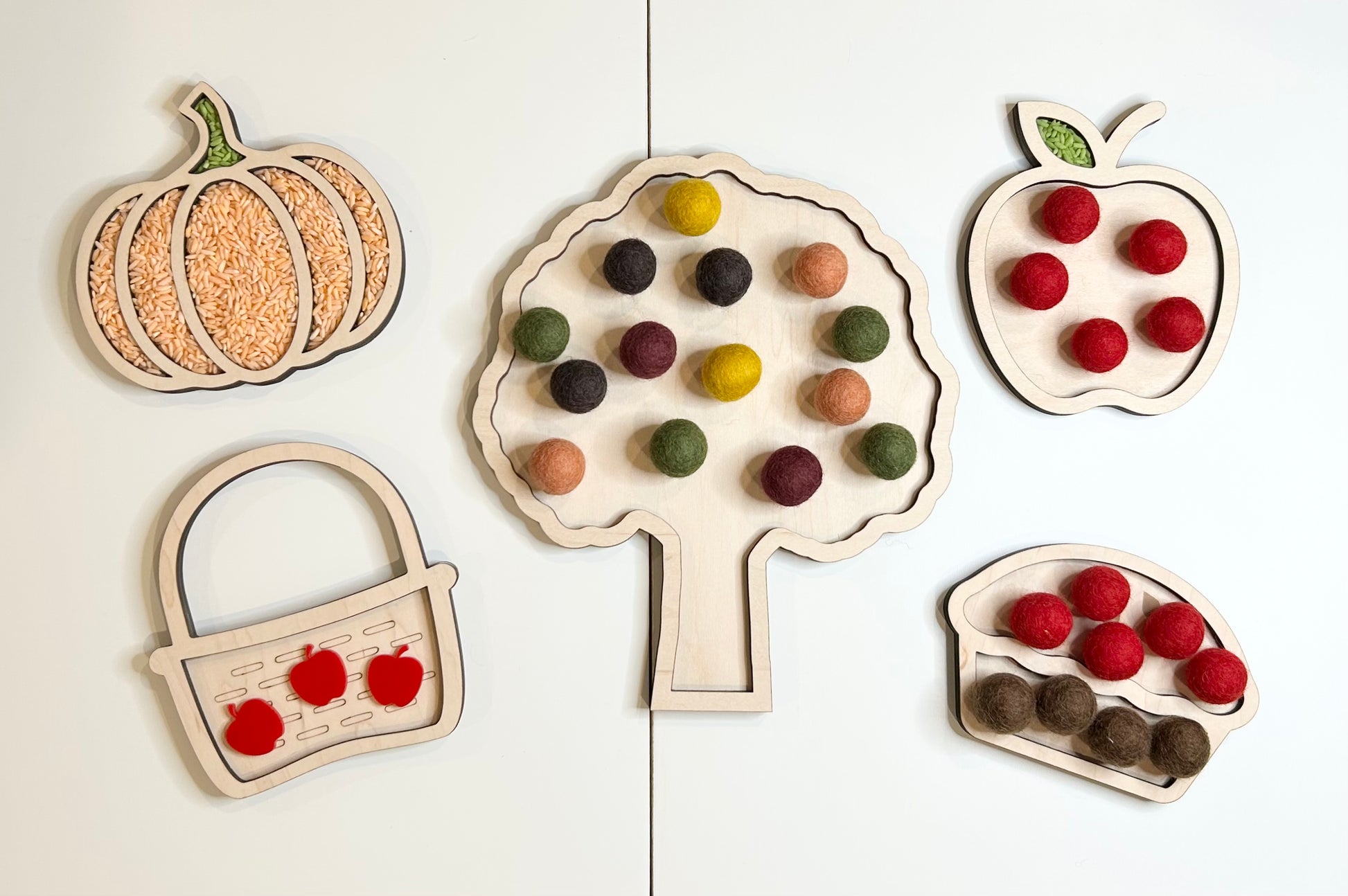 After you go apple picking, come home to make your very own apple pie! Fill your tray with rice, beans, gems and more! Pairs great with our apple and basket tray.