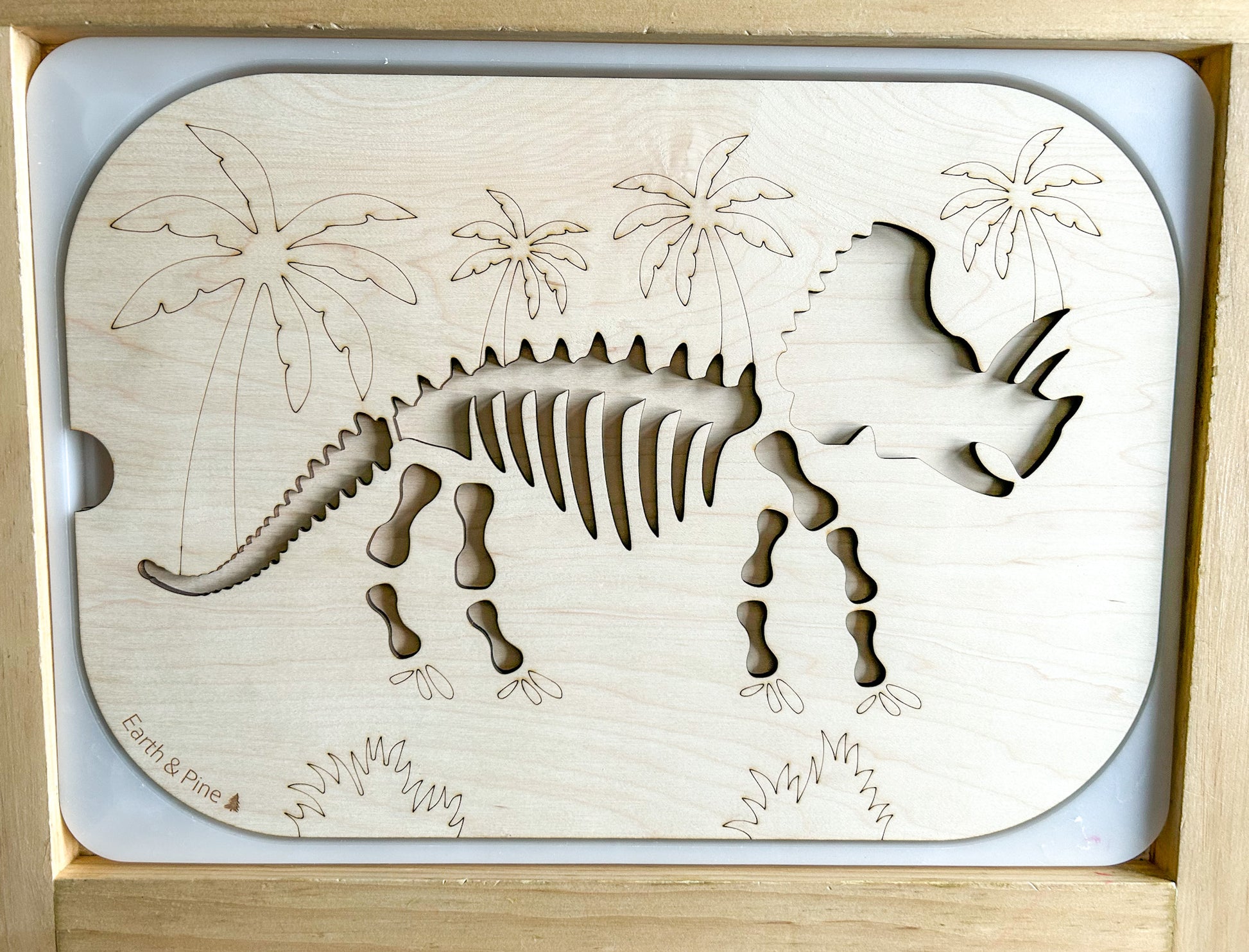 Hide the bones in a fun sensory base! Your little ones can dig them up and place them in the puzzle style insert. Dump & start again!