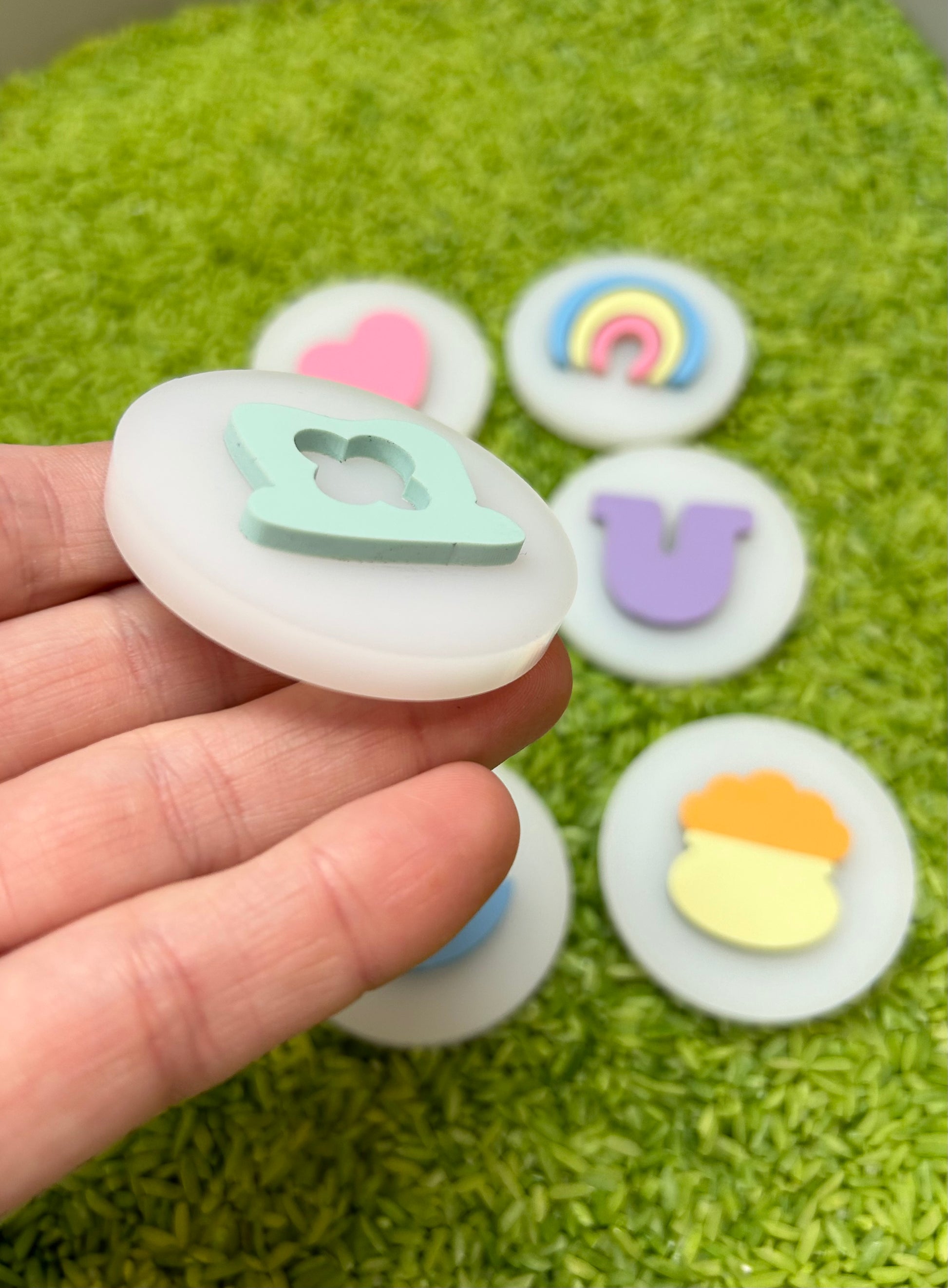 This adorable set of lucky charm inspired playdough stampers are one of a kind!