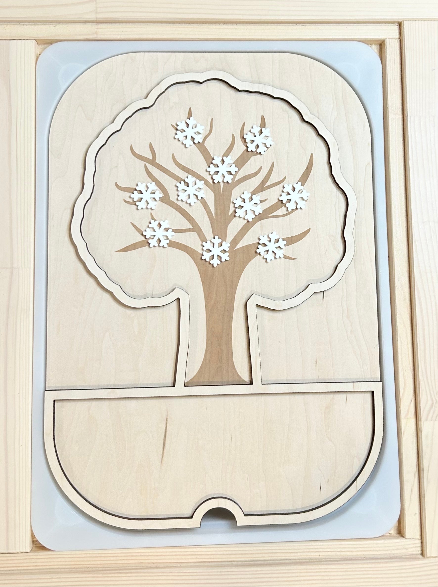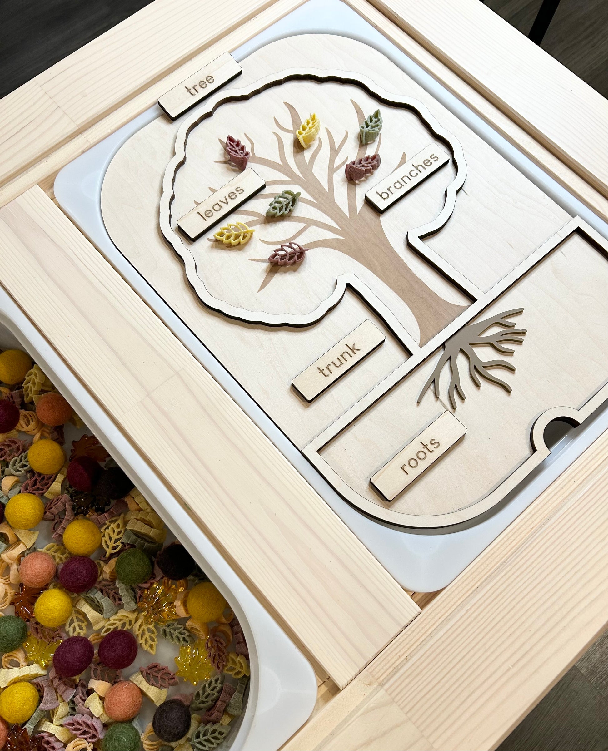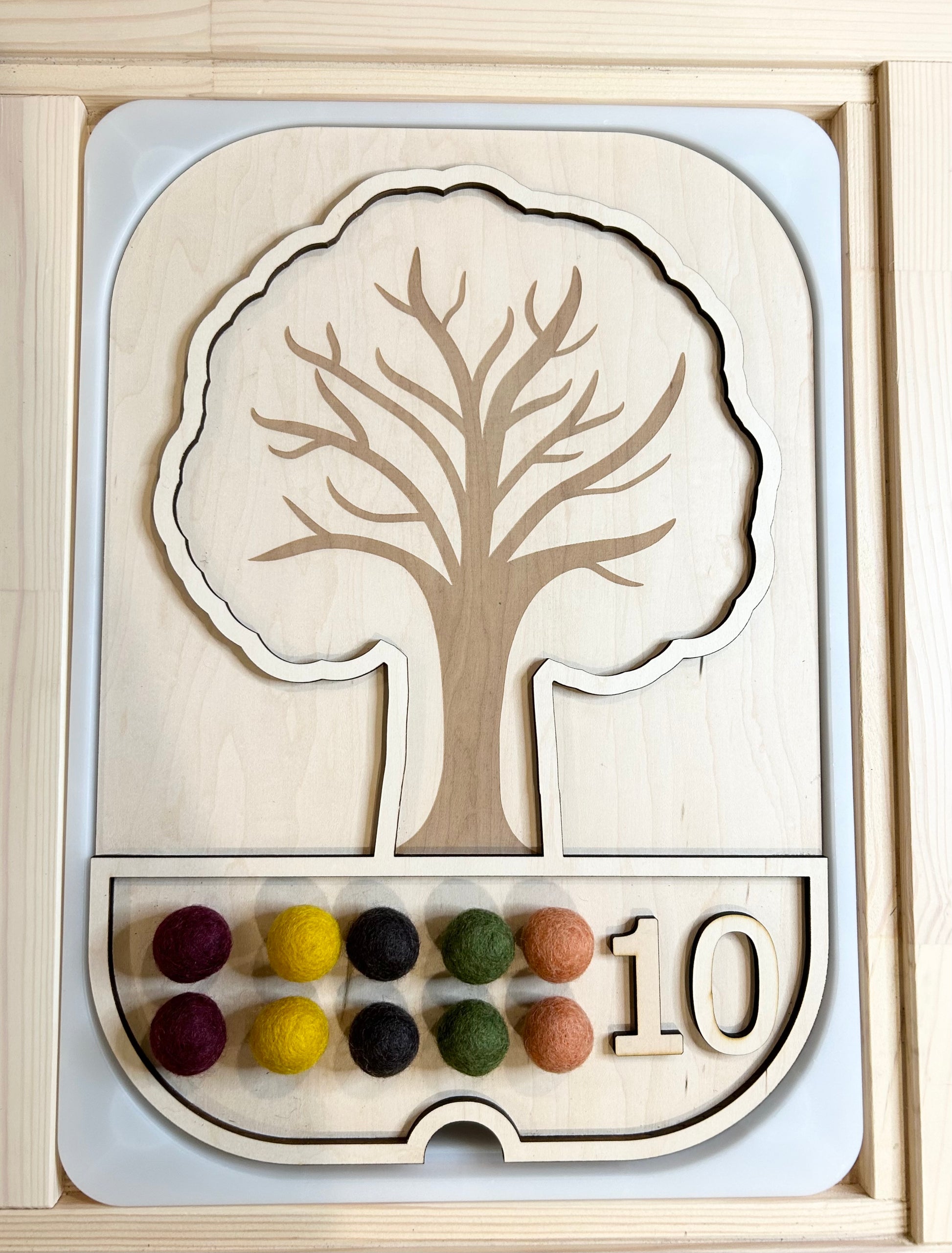 This insert is the ultimate learning tree! There are so many opportunities to learn about seasonal changes, parts of the tree, counting and more! The tree is also fillable to use with your favourite sensory base and has a tray at the bottom that can be used for enhanced learning.