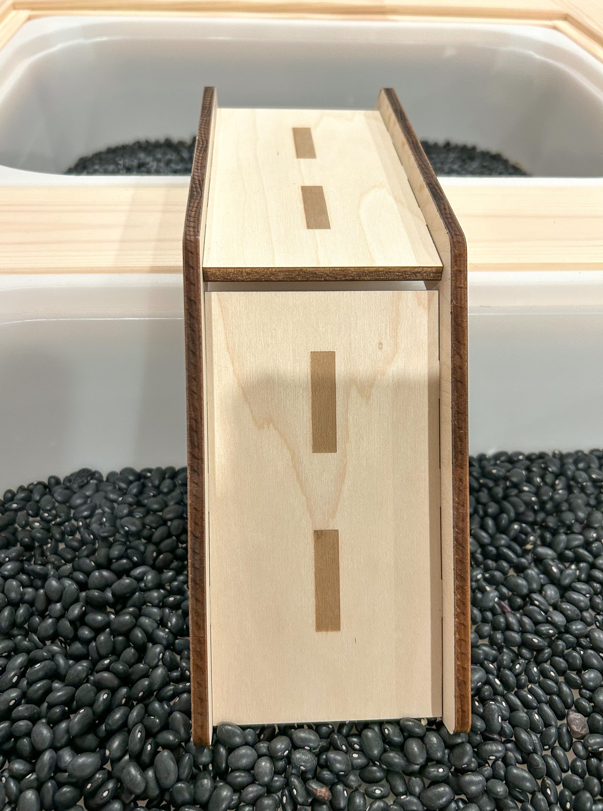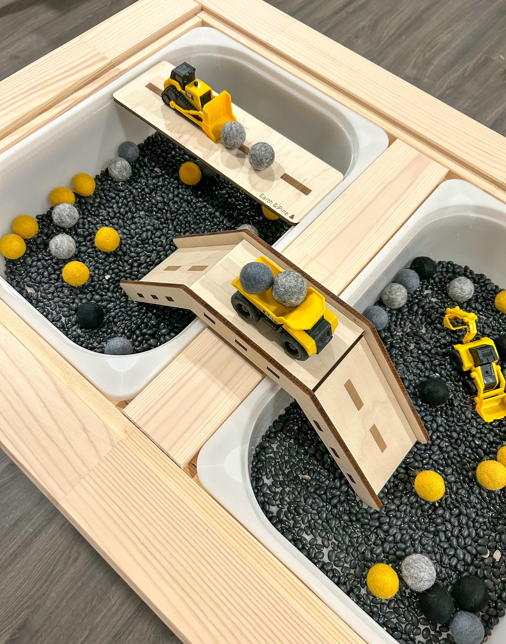 Upgrade your construction & vehicle play with this wooden bridge that fits perfectly between the bins of your sensory table. Not limited to table play! Use it anywhere with your favourite toy vehicles.