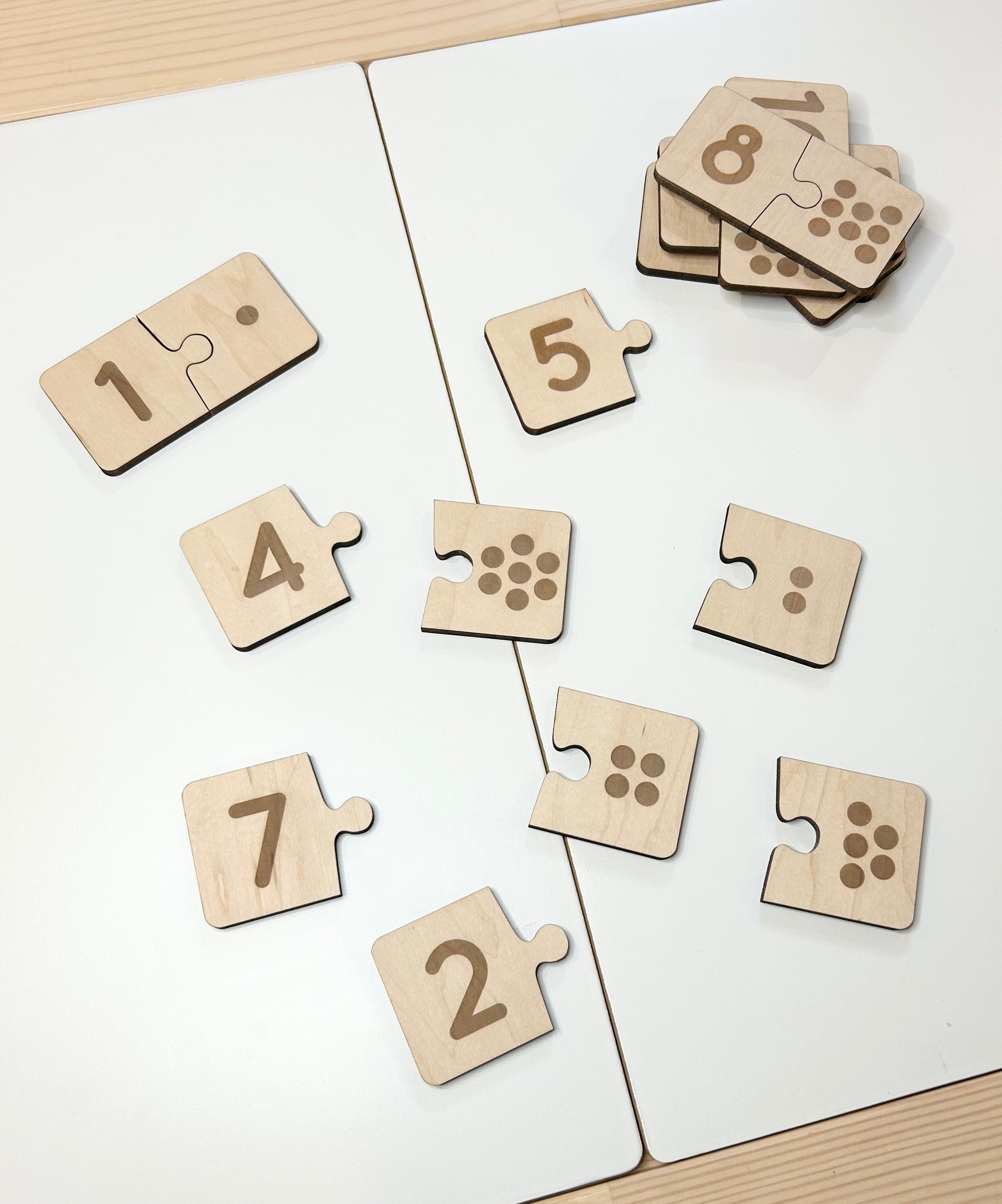 This math puzzle is great for beginners who are learning number recognition and counting. Includes 20 pieces for number 1 to 10.